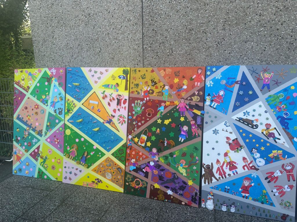Zwei Tage lang durften unsere SchülerInnen mit der Begleitung und Vorbereitung von Jules Wunderwerkstatt kreativ werden, basteln, malen, kleben und 10 wunderbare Jahreszeitenleinwände für die Verschönerung unseres Schulgebäudes gestalten. Da durfte natürlich unser Logo auch nicht fehlen.