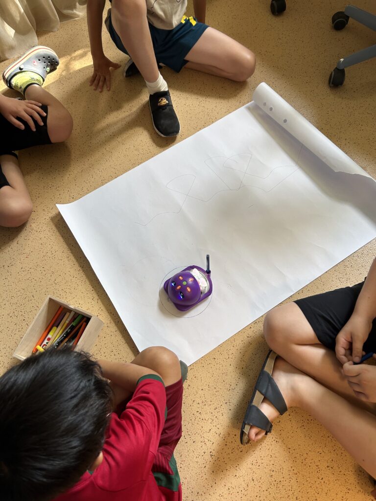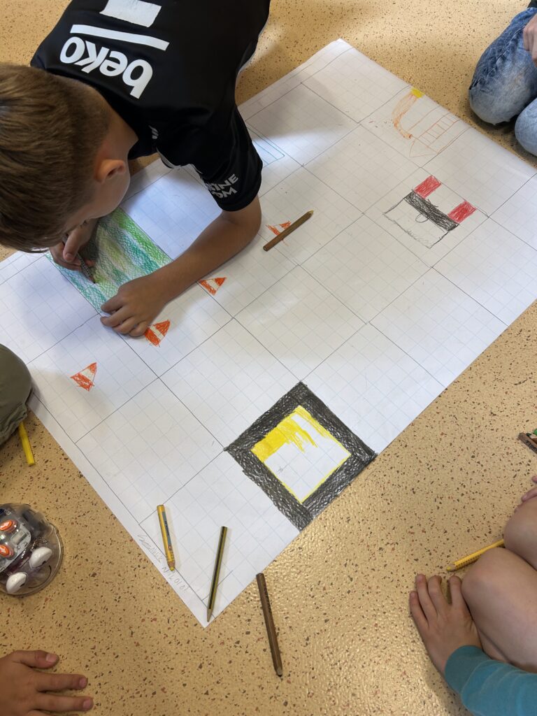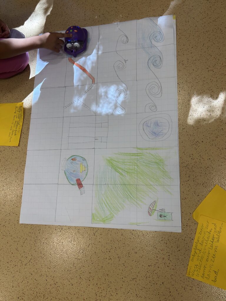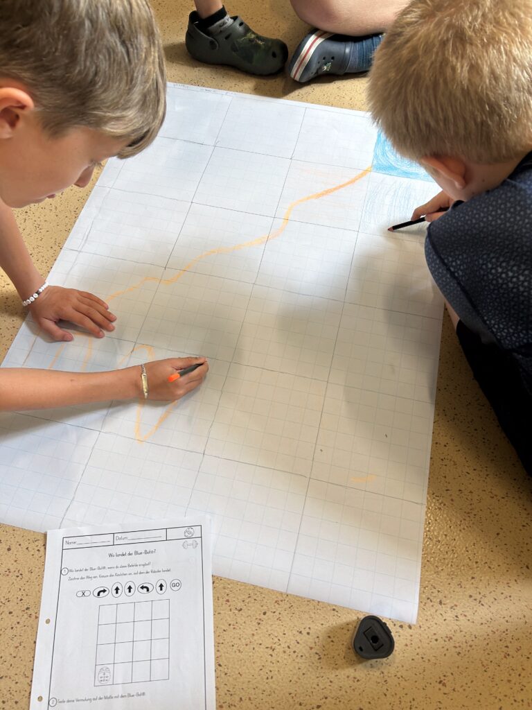Kurz vor den Sommerferien hielten Roboter Einzug bei den Pandas. Die programmierbaren Blue-Bots wurden aus der Stadtbibliothek Langenfeld ausgeliehen. In Kleingruppen haben die Kinder zunächst mit den Blue-Bots gezeichnet. So konnten sie erste Erfahrungen im Programmieren sammeln. Im Anschluss wurden eigenständig Matten gezeichnet, auf denen die Blue-Bots Aufgaben zu erfüllen hatten. Voller Stolz haben die Kinder ihre Erfahrungen und Ergebnisse auch einer ersten Klasse präsentiert.